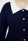 - - Materyal:Akrilik - Kalıp:Regular - Kol Tipi:Düşük Kol - Desen:Düz - Kumaş Tipi:Triko - Renk:Lacivert - Yaka Tipi:Gömlek Yaka - Boy:Regular - Siluet:Uzun - Kol Boyu:Uzun - Ortam:Casual/Günlük - Persona:Cool & Comfort - Dokuma Tipi:Fitilli - Sürdürülebilirlik Detayı:Hayır - Materyal Bileşeni:100% Akrilik - Kalınlık:Orta - Yıkama Talimatı:T41 - Koleksiyon:Büyük Beden - Yaş:Tüm Yaş Grupları -