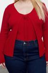 Ersefa Büyük Beden Kadın Modern Tarz Rahat Uzun V Yaka Düz Kol Crop Triko Hırka Atlet Takım