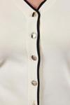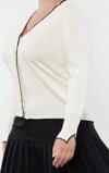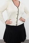 Hem kazak hem de hırka olarak kullanılabilen bu çok yönlü tasarım, V yakası ve düğmeli ön kısmı ile zarif bir görünüm sunar.