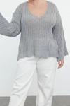 Büyük Beden Kadın Modern Tarz Rahat Uzun V Yaka Düz Kol Regular Triko Kazak - Ürünümüz hem günlük şıklık hem de rahatlık arayanlar için mükemmel bir seçenek.