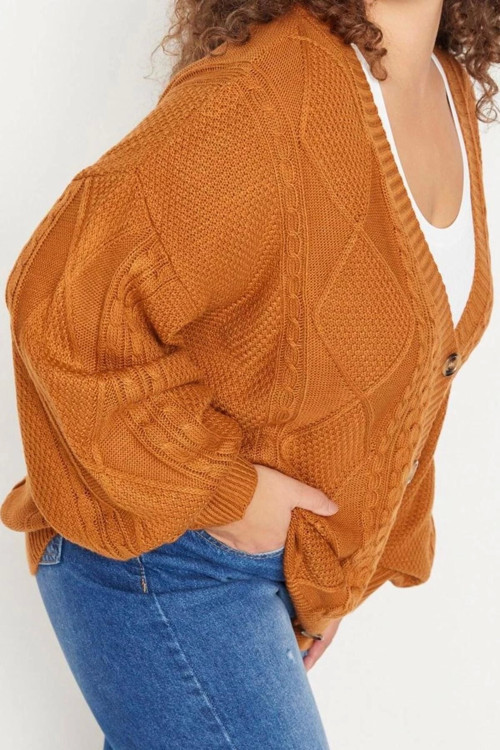 Büyük Beden Kadın Modern Tarz Rahat Uzun V Yaka Saç Örgü Kol Regular Triko Hırka - Ürünümüz hem günlük şıklık hem de rahatlık arayanlar için mükemmel bir seçenek.