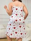 ❤️🌙 Geceye Kalpten Dokunuş: Büyük Beden Kalp Desenli Pamuklu İnce Askılı Uzun Gecelik ✨