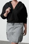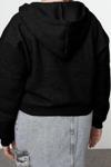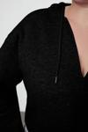 Büyük Beden Kapüşonlu Düşük Kol Crop Kalın Polarlı V Yaka Rahat Kesim Crop Örme Sweatshirt