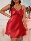 Büyük Beden Kırmızı Dantel Detaylı Saten Gecelik