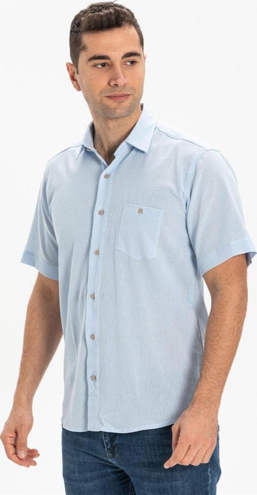 Büyük Beden Kısa Kol Şile Bezi Tek Cepli Erkek Yazlık Gömlek Buz Mavi 3027