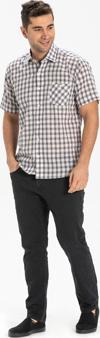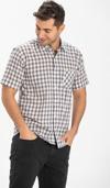 Büyük Beden Kısa Kol Şile Bezi Tek Cepli Erkek Yazlık Gömlek Füme Ekose 3039