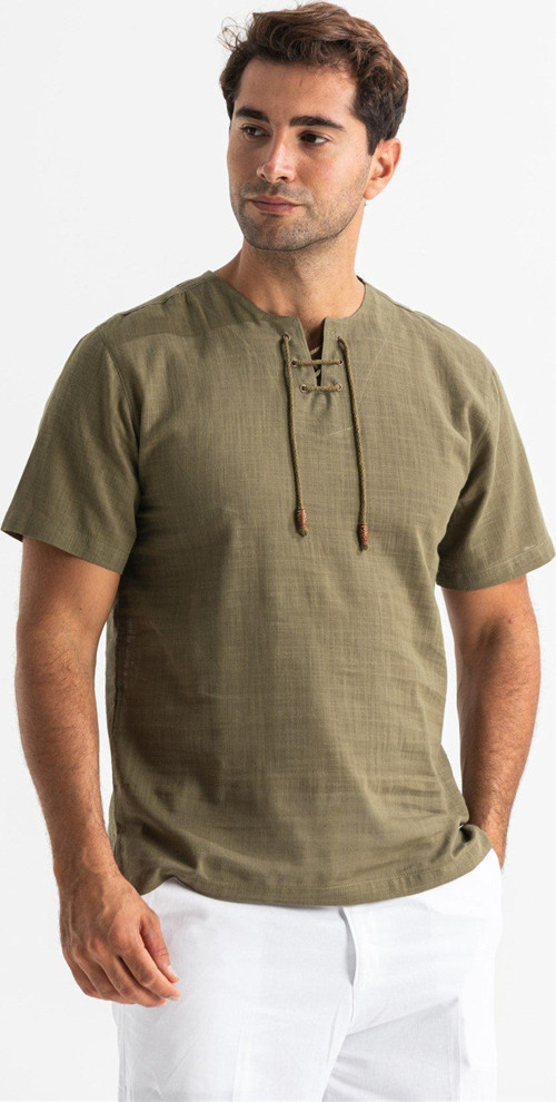 Eliş Şile Bezi Büyük Beden Kısa Kol Şile Bezi Zımbalı Erkek Yazlık Tshirt Haki 3049