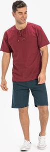 Eliş Şile Bezi Büyük Beden Kısa Kol Şile Bezi Zımbalı Erkek Yazlık Tshirt Koyu Bordo 3068