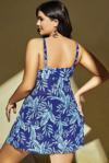? Büyük Beden Mavi Üstüne Yaprak Desenli Yırtmaçlı Gecelik