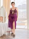 Beruflic Büyük Beden Mor Dantelli Tül Fantezi Uzun Yırtmaçlı Gecelik