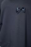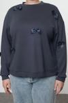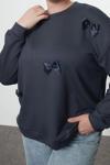 Büyük Beden Oversize Bisiklet Yaka Standart Kol Gri Kurdele Detaylı Tarzl Örme Sweatshirt