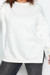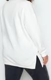Büyük Beden Oversize Bisiklet Yaka Standart Kol Kalın İçi Polarlı Yırtmaçlı Örme Sweatshirt