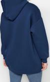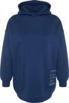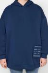Büyük Beden Relaxed Kapüşonlu Düşük Kol Regular Slogan Detaylı İçi Polar Kalın Örme Sweatshirt