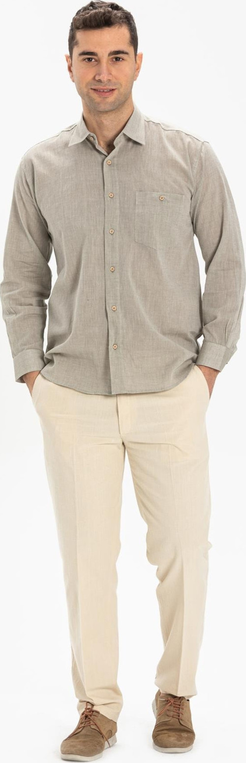 Eliş Şile Bezi Büyük Beden Şile Bezi Tek Cepli Uzun Kol Erkek Yazlık Gömlek Taş 3031