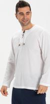 Eliş Şile Bezi Büyük Beden Şile Bezi Uzun Kol Zımbalı Erkek Yazlık Tshirt Beyaz 3001