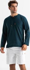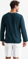 Büyük Beden Şile Bezi Uzun Kol Zımbalı Erkek Yazlık Tshirt Koyu Petrol 3069