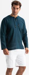Eliş Şile Bezi Büyük Beden Şile Bezi Uzun Kol Zımbalı Erkek Yazlık Tshirt Koyu Petrol 3069