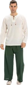 Eliş Şile Bezi Büyük Beden Şile Bezi Uzun Kol Tek Cepli Hakim Yaka Erkek Yazlık Tshirt Beyaz 3001