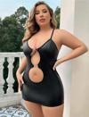Büyük Beden Siyah Deri Metal Aksesuarlı Fantezi Elbise