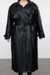 Büyük Beden Tasarım Düz Astarlı Yaka Uzun Oversize Ceket Kadın Fit Maxi Boy Suni Deri Trençkot - Bu kadın trençkot, klasik çizgisi ve modern detaylarıyla her tarza uyum sağlayan şık bir dış giyim parçasıdır.