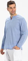 Büyük Beden Şile Bezi Uzun Kol Tek Cepli Hakim Yaka Erkek Yazlık Tshirt Mavi 3032 - Image 1