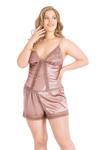 Beruflic Büyük Beden Vizon Saten Babydoll Şort Takımı