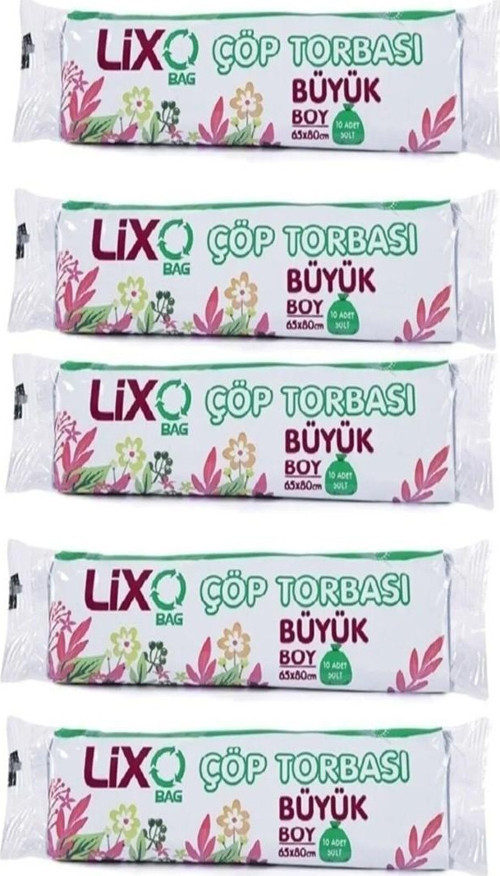 | Lixo Çöp Torbası -Büyük Boy Çöp Torbası 65 x 80 cm 10 Lu Rulo x 5 Paket = 50 Adet (Mavi) - Çöp Torbası kullanımı ile yaşam alanınızdaki düzeni, hijyeni kolayca sağlayabilir ve temizlik işlerinizde fonksiyonelliği yüksek olan bu ürünü tercih edebilirsiniz. Çöp Torbası sadece çöpleri muhafaza etmek için değil, evde, ofiste ve iş yerinizde kullanmadığınız pek çok eşyanın tozdan uzak kalmasını sağlamak için de kullanabilirsiniz. Çöp torbası ile her şeyi toplayıp, atmak ve düzenlemek daha kolaydır. Çöplerinizin dışarıya kötü kokular yaymasını engelleyebilmek ve daha pratik bir şekilde toplanabilmesini sağlamak istiyorsanız çöp torbalarını kullanabilirsiniz. Çöplerinizin ağzını sıkı bir şekilde bağladıktan sonra mikrop, bakteri, kötü koku, sinek ve haşere üremesini önleyebilirsiniz. -Paket İçeriği : -Büyük Boy Çöp Torbası 65 x 80 cm 10 Lu Rulo x 5 Paket = 50 Adet (Mavi) |