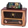 Go İthalat Büyük Boy Telefon Tutma Saplı Retro Ahşap Tasarım Bluetooth Hoparlörlü Radyo – FM/AM Destekli, Şarjl