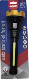 Go İthalat BÜYÜK=24CM 2İN1= OSL LED - COB LED USB ŞARJLI EL FENERİ 3-KADEME IŞIK - FLAŞÖR ŞARJ GÖSTERGE (4401)