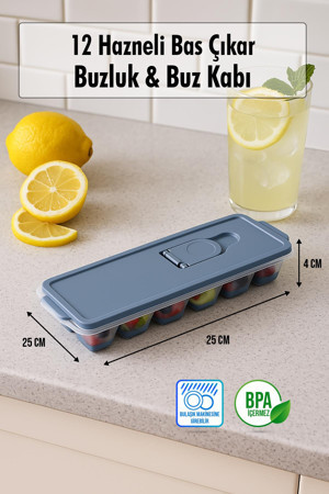 BUFFER® 12li Kapaklı Yapışmaz Silikon Tabanlı Plastik Küp Buz Kalıbı
