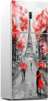 Sticker Art Buzdolabı Sticker Kaplama Dolap Kaplama Etiketi Eyfel Kırmızı Yağlıboya