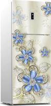 Buzdolabı Sticker Kaplama Dolap Kaplama Etiketi Mavi Çiçek Elmas