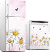 Sticker Art Buzdolabı ve Bulaşık Makinası Beyaz Eşya Sticker Kaplama Papatya Kelebek