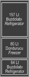 Üst ve alt bölüm buzdolabı, orta bölüm derin dondurucu.