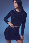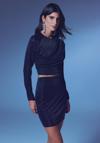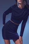 Bisiklet yaka, uzun düz kol, esnek, simli kısa bluz.
