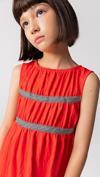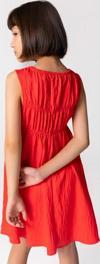 Kırmızı rengi ve göğsündeki büzgü detaylarıyla dikkat çeken bu kolsuz, sıfır yaka yaz elbisesi, siyah-beyaz şeritleriyle modern bir tarz sunuyor. Günlük kullanımda rahatlık ve şıklık arayanlar için ideal olan bu elbise, yazın vazgeçilmez bir parçası olacak.