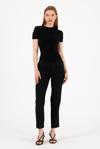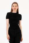 Desen Triko Kadın Sıfır Yaka Sim Çizgili Taşlı Yün Bluz 25026 Siyah - Image 1