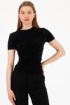 Desen Triko Kadın Sıfır Yaka Sim Çizgili Taşlı Yün Bluz 25026 Siyah