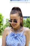Metal çerçeve materyali ile hem hafif hem de dayanıklı bir yapıya sahip olan bu güneş gözlüğü, konforlu bir deneyim sunar