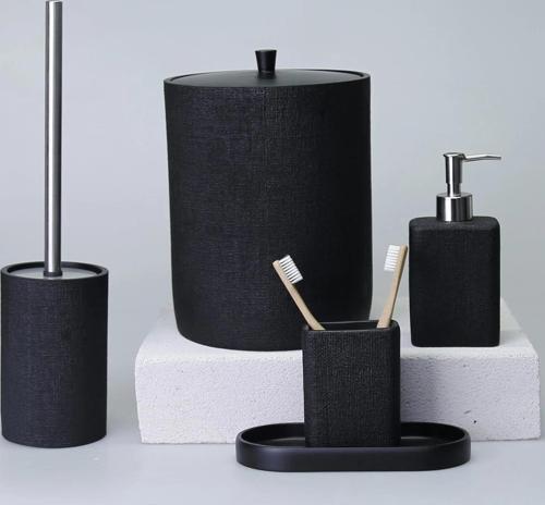 By Selim Linen Siyah 5 Parça Polyester Banyo Seti