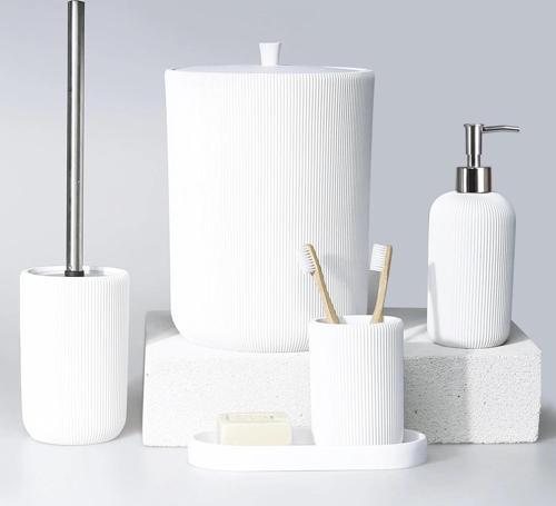 By Selim Lydia Beyaz 5 Parça Polyester Banyo Seti