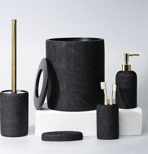 By Selim Natural 5 Parça Polyester Banyo Seti Siyah