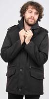 Detay: Dik yaka, Fermuar ve düğme kapamalı, Kapak ve fermuar cepli, Omuz apoletli, Göğüs kısmı biyeli, Erkek kaban;