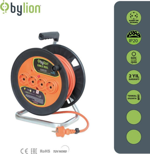Bylion Bylıon Seyyar Makaralı Uzatma Kablosu 3*2.5mm² 20 Mt. - Işıklı