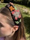 Bu özel tasarım el işçiliği acı kahve rengi çiçekli saç tacı ile: