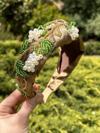 ByMerve BYM503 Tasarım El Yapımı El İşlemeli Vizon Saten Beyaz Üzümlü Boncuk Düğün Kına Kadın Taç Aksesuar