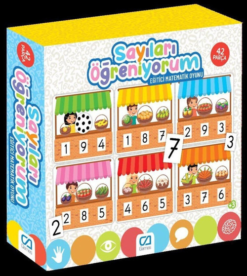 Ca Games Eğitici ve Öğretici Oyunlar Sayıları Öğrenıyorum 42 Parça Matematik Oyunu SAYILARI ÖĞRENİYORUM EĞİTİCİ MATEMATİK OYUNU. Sayıları öğreniyorum eğitici matematik oyunu ile çocuklara sayıları tanır, sayı saymayı ve miktarları karşılaştırmayı öğrenirler. Oyun içerisinde 6 farklı oyun zemini ve 36 parça bulunmaktadır. Oyun toplam 42 parçadır. Çocuklar uygun zeminlerde yer alan sayıları sayı kutucuğuna, miktarları ise sepetlerde yer alan meyvelerin ve sebzelerin üzerine yerleştirerek oyunu tamamlarlar…