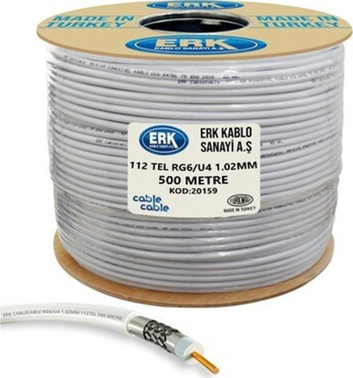 Cable Cable Anten Kablosu Rg6/u4 1.02MM 112TEL 500MT Erk Yerli