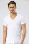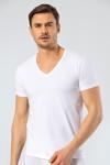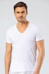 Derin V yaka, likralı t-shirt. Dört mevsim cildinize nefes aldıracak yapısıyla benzersiz bir rahatlık sunar. Likralı kumaşı sayesinde dayanıklı ve çok uzun ömürlü bir ürün olup her vücut formuna kusursuz uyum sağlar.