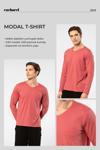 V yaka, logo nakışlı uzun kollu t-shirt. Modal-pamuk karışımı materyal, nefes alabilirlik